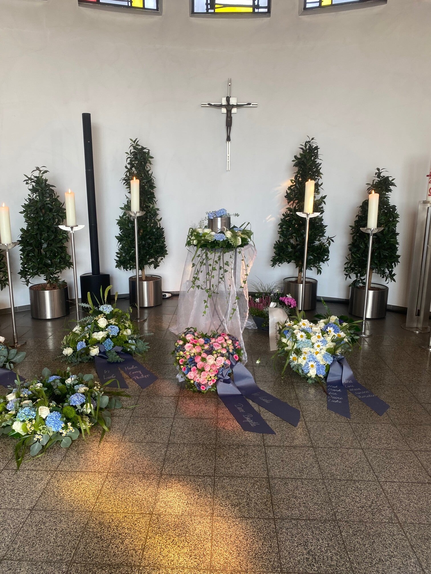 Ein Beispiel, wie wir eine Feuerbestattung gestalten können. Wir legen Wert darauf, einen würdevollen und persönlichen Rahmen zu schaffen, der den Wünschen des Verstorbenen und der Angehörigen entspricht.